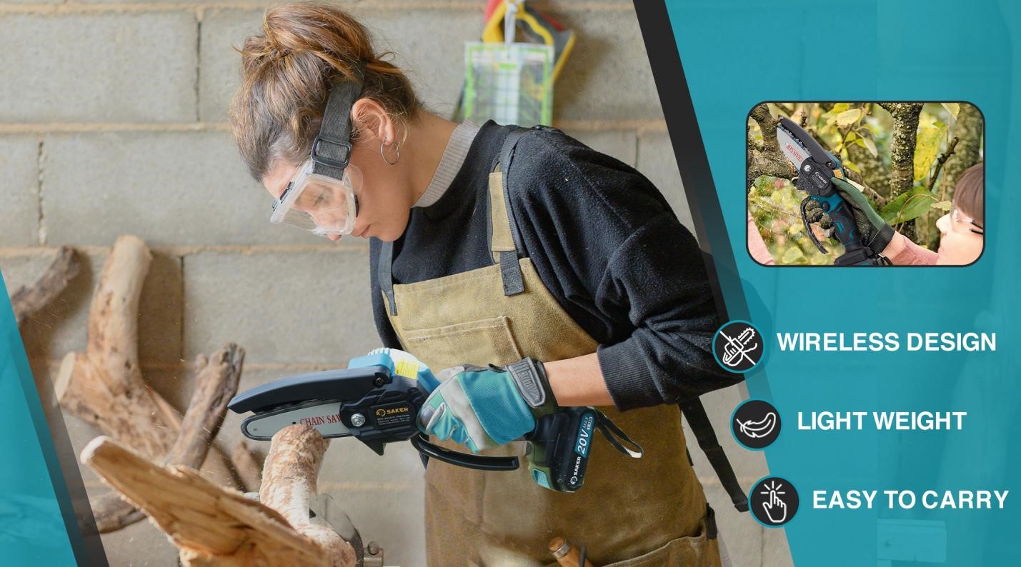 The Saker mini chainsaw is an effective tool for cutting tree branches, trimming trees, woodworking and helping in completing other handicraft projects. The Saker mini chain saw improves your work efficiency and helps a lot in various aspects of home improvement.